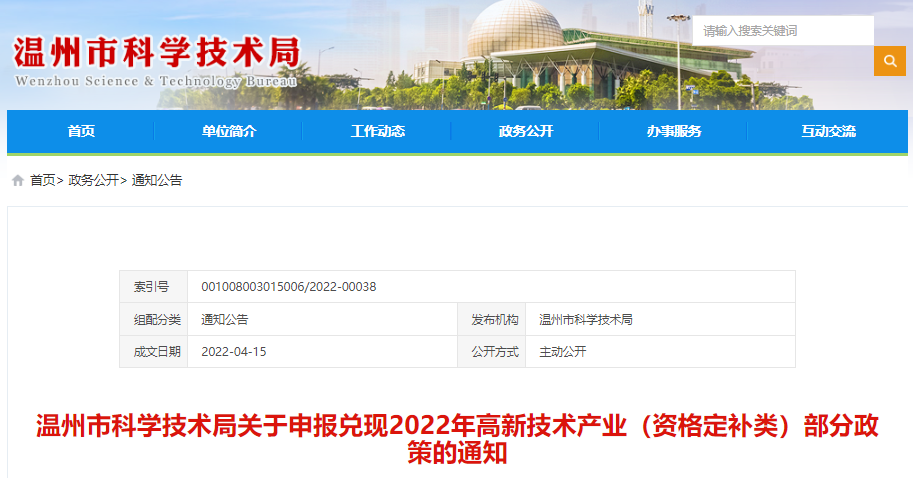 根據《關于全面加快科技創新推動工業經濟高質量發展的若干政策意見》(溫政發〔2020〕13號)和《關于修訂部分市級產業政策的通知》(溫政辦〔2021〕83號)文件精神,經研究,決定組織開展2022年企業研發機構、科技企業培育、雙創載體等部分資格定補類政策申報和兌現。申報對象包括: